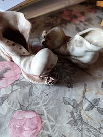 coppia di scarpe in ceramica, bomboniere vintage, arrivano da un negozio di Cinisello Balsamo. Circa 8cmx2