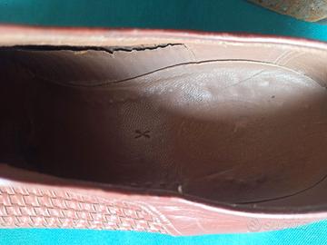 Vendo un paio di scarpe da uomo di marca Zenith, anni Cinquanta, di pelle con tomaia in pelle intrecciata, fondo integro; misura n. 41.