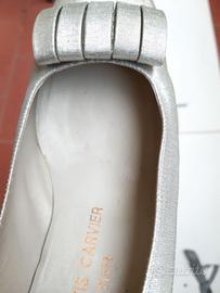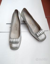 #Scarpe decoltè argentate rivestite in lurex con decoro tacco interni e suola in vero cuoio misura 37