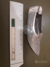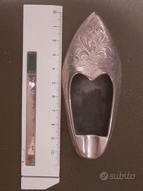 Singolare posacenere a forma di scarpetta decorato con incisioni fitomorfe a bulino.