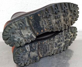 RICHIEDERE FOTO SUPPLEMENTARI. N991) Raro paio di scarponcini originali in cuoio marrone dotazione vintage dei Reparti Alpini dell'Esercito Italiano. Classico modello anni '60, questi sono fine serie tra gli ultimi modelli prodotti a inizio anni '80 del tutto identici a quelli anni '60, prima del passaggio a normali anfibi. Veramente pochissimo usati in ottime condizioni generali. Estremamente robusti e costruiti con materiali e fattura eccellenti. Suole Davos e lacci ovviamente originali. La taglia riportata è 42 (senza nessun impegno su calzabilità, taglie ecc. li cedo come oggetto da collezione), presente il marchio interno del produttore Dolomite con l'anno ed il numero di contratto militare. Stupendo pezzo, 100% originali militari. Veramente ottimo pezzo.