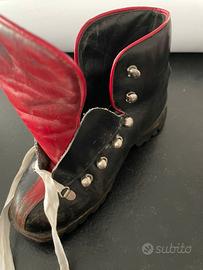 Scarponi da sci Davos vintage originali anni '60/'70: - Scarpa in cuoio - Suola Davos montagna (made in Italy) -Misura n.32-33 - Colore nero con dettagli rossi. - Lacci bianchi e passanti in metallo. - Fodera linguetta rossa. - Ideale per collezionisti, arredamento baita o negozio di articoli sportivi.