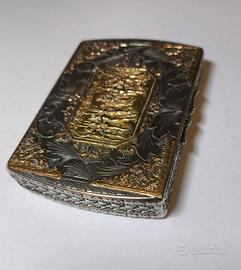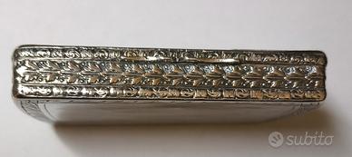 Scatola argento 800, punzonata all'interno del coperchio,riccamente lavorata ai