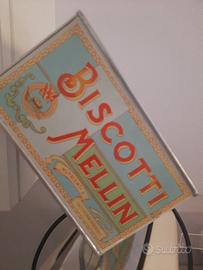 scatola di latta originale anni sessanta dei biscotti Mellin. 16x10 cm h. 9 cm senza tappo.