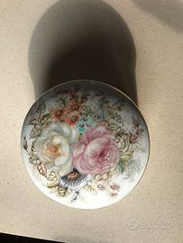 Scatola di porcellana Capodimonte dipinta a mano il diametro cm.13 alta cm.6,5