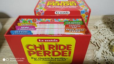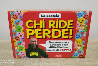 Scatola Gioco Chi ride Perde! Per vincere la partita... devi rimanere serio! Leggi la barzelletta e fai ridere il tuo avversario. ! La scatola contiene 120 carte e 360 barzellette e videobarzellette del fantastico Geppo