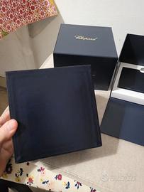 Scatola orologio Chopard compelta di certificato di garanzia,certificato di origine,libretti e targhetta.Condizioni pari al nuovo come si può vedere dalle fotografie.