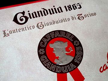 Cedo bella scatola per gianduiotti in latta di stile classico.