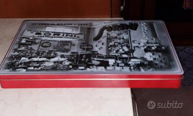 Scatola commemorativa del caramellificio Sorini, risalente alla 16ª Fiera di Milano del 1935. Rappresenta uno stand dell'epoca.