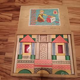 scatola (19 x 25) costruzioni giochi in legno, anni 50/60 condizioni perfette nessun pezzo mancante
