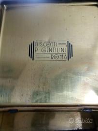 Scatola in latta Biscotti Gentilini Roma Anni 30-40 Misura 23x20x10 cm. In buone condizioni