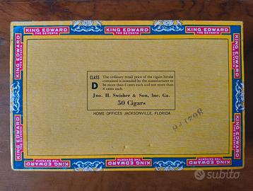 Rarissima Scatola da collezione vuota di Sigari King Edward Imperial Mild Tobaccos, direttamente dalla Florida 🇺🇸 Il nome deriva da Re Edoardo VII d’Inghilterra, che nel 1901, appena salito al trono, pronunciò la celebre frase: “Gentlemen, you may smoke”, abolendo il divieto di fumo imposto da sua madre, la regina Vittoria 👑