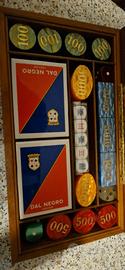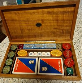 Scatola da gioco in legno con carte e fiches marca Dal Negro nuova mai usata cm29xcm16