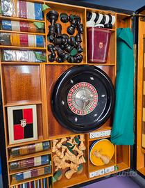 Scacchiera, roulette russa, carte da scala, dadi, fiches.