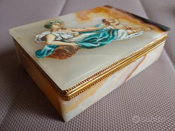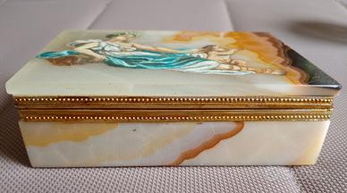 Scatola Decò in alabastro dipinto. Venere ed Eros