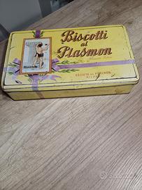 Scatola di latta "Biscotti al Plasmon" anno 1956,alimento vintage societa' del plasmon 960 Gr. Dim. Cm.33 x 18 x7.