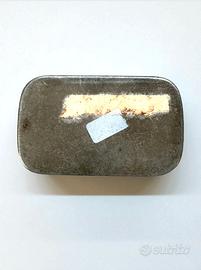 Scatola di latta originale Menthotem Menthol Dragee. II Guerra Mondiale, appartenente al kit medico dei soldati tedeschi della Werhmacht. Anni '40. Misure 7,5 x 4,5 x 2