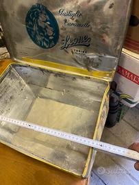 In vendita rara scatola di latta d'epoca del famoso marchio Leone di Torino, produttore storico di pastiglie e caramelle.
