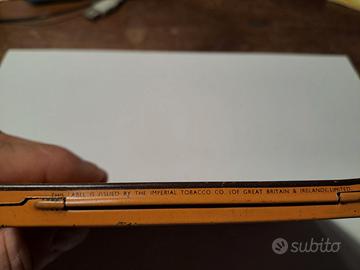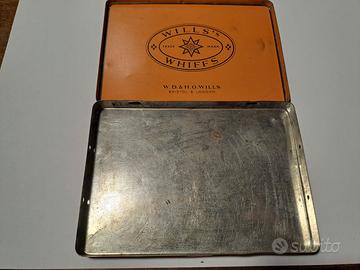 Bella scatola di sigari in metallo arancione "Wills's Whiffs" con coperchio a cerniera, circa metà degli anni 1950, prodotta da W.D. & H.O. Wills (Bristol & London). Realizzata nel Regno Unito per la Imperial Tobacco Company (di Gran Bretagna e Irlanda Limited).Dimensioni: 13 Cm x 9Cmx 1 Cm. Disponibili altre scatole in latta vintage segui le mie inserzioni.