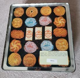 Scatola di latta vintage, biscotti Lazzaroni assortito Malibran. Dimensioni 24x23x8.