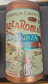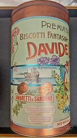 Bella scatola di latta per biscotti fantasia. Marca Davide Lazzaroni & Figli.