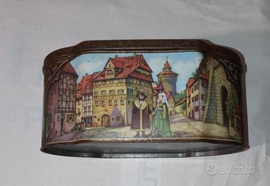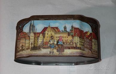 Scatola di latta pubblicitaria vintage.