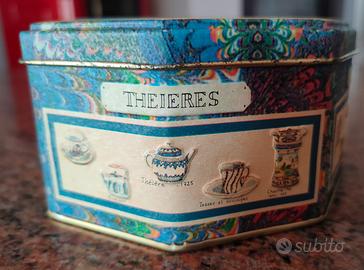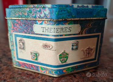 Scatola di latta del thè Vintage misure 11,5 x 11,5 x 6 cm in buone condizioni, conservata bene