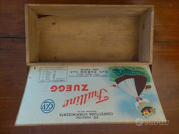 Scatola fruttino Zuegg, in legno. Dimensioni lunghezza cm 32, larghezza cm 15, altezza cm 7,5. In ottime condizioni, manca di una piccola parte del fondo