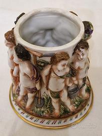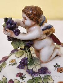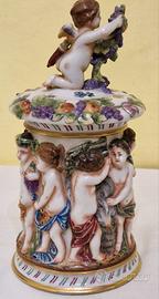 Cachepot ,scatola, Capodimonte, Ginori, Rudolstadt Decorata Con Putti a tutto tondo in rilievo intenti nella raccolta dell' uva.