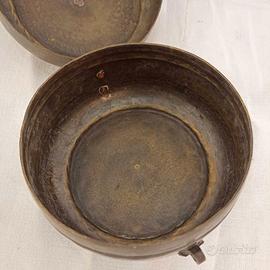 Scatola in bronzo inciso per pane Indiano con cerniera e decorazioni incise sul coperchio. Presa ad anello. Condizioni: Segni del tempo alla base. Da lucidare. Periodo-Luogo: Met 900 Dimensioni: 15xh10 cm. Codice Prodotto: OGUSOG0284788 Scopri decine di articoli tra modellini, quadri, servizi per la tavola, e tante altre tipologie di oggetti QUESTO ARTICOLO E' DISPONIBILE PRESSO IL NEGOZIO DI CAMBIAGO Venditore: Barbara (dal Luned al Venerd: dalle 9:00 alle 19:00, Sabato: dalle 10:00 alle 19:00) Per maggiori informazioni contattateci su Whatsapp. Disponibile ad inviare video o foto integrative su Whatsapp Di Mano in Mano, Negozio dell'usato di Cambiago, via Castellazzo 8. Oltre 4000mq espositivi, tra usato, vintage, modernariato, antiquariato, arte e libri. Esplora il nostro portale mercatiniusato.org per scoprire centinaia di arredi usati.