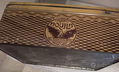scatola in latta anni 40/50 Purgante Aquila - Farmaceutica Polesana Rovigo - altezza 11 cm, larghezza 25 cm, profondità 18 cm