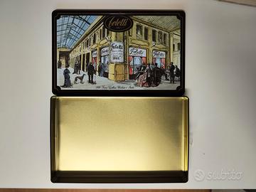 Scatola in latta Feletti. Dimensioni: lunghezza 35cm, larghezza 22cm, altezza 3,5cm