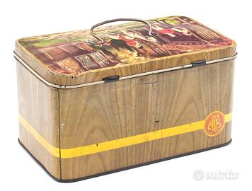 Scatola o barattolo in latta Lievito Bertolini cinquantenario 1911-1961, rara. Buone condizioni generali. Misure 22,5x13x12 cm.