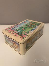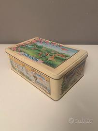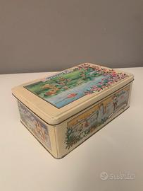 Storica scatola in latta pubblicitaria biscotti pan di stelle Mulino Bianco. Vintage anni’80. Edizioni speciali a tema le 4 stagioni, questa è La Primavera. Misura 29x19x10cm. Usata e con segni di vissuto ma in buone condizioni estetiche come da foto. Articolo da collezione per appassionati del genere.