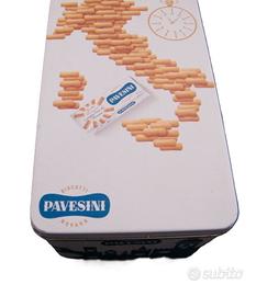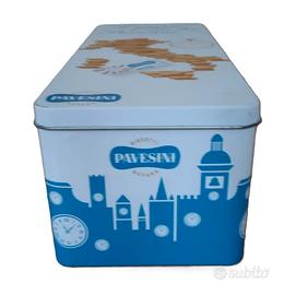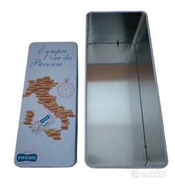 Scatola in latta set Porta Pavesini, archivio storico Barilla, bellissima immagine raffigurante l'Italia stilizzata, dimensioni cm 24 x cm 10 x altezza cm 8,5.