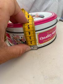 Bellissima Scatola di Latta , Antico Barattolo in Lamiera da Collezione , cioccolatini e caramelle Nestlè Mackintosh's . Buone condizioni, nessuna bozza, colori brillanti, vernice ottima, tutto come in foto , diametro 12 cm, altezza 5 cm.