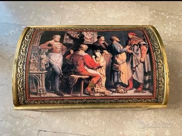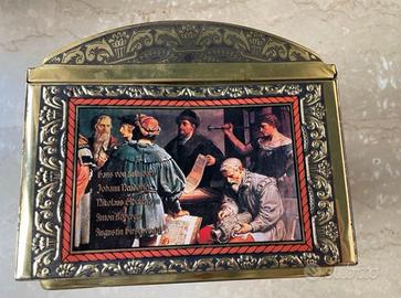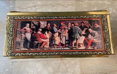 BELLISSIMA SCATOLA IN LATTA DI E. OTTO SCHMIDT. MOTIVI DECORATIVI, IDEALE PER COLLEZIONISTI. APERTURA CON CERNIERE. CONDIZIONI OTTIME, SEGNI DEL TEMPO. MISURE 30x17x20.