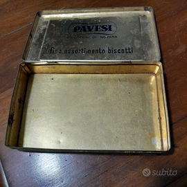 Classica scatola in latta vintage della pavesi, anni 50, la scatola si presenta così come in foto, mancanti alcune parti della vernice per usura, presenti segni del tempo.