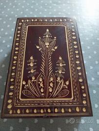 Vendo scatola in legno intagliata con parte interna con specchio portagioie e trucco vintage