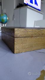Scatola portagioie in legno, decorata con dorature e intagli, interno in buone condizioni, decoro esterno parzialmente deteriorato. Probabile epoca primi '900. Non ho la possibilità di spedire il pacco, necessario ritiro a domicilio.