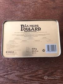 Scatola originale francese anni 90 che conteneva i famosi biscotti al burro di Mont Saint Michel da 450gr. Coperchio incernierato e disegni stampati, no adesivi. Dimensioni cm. 19,5 x 13 x 7 h.