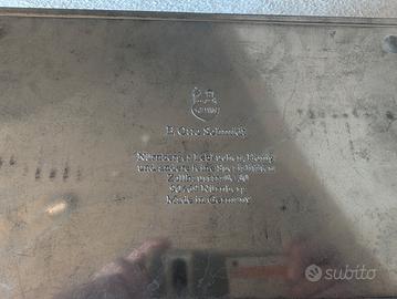 Otto Schimdt è un famoso produttore di Pan Pepato e biscotti di Norimberga, attivo da inizio 1900. Ha sempre venduto i suoi dolci in scatole di metallo divenute poi oggetto di collezionismo. Questa rappresenta splendide scene natalizie. Misura 27x17x10 cm ed è in condizioni ottime vista l'età. C'è una piccolissima ammaccatura sul lato sinistro come da foto 3 e 4. Ovviamente la scatola è Made in Germany Le immagini decorative sono perfette e anche l'interno è splendente. Vista la rarità (in Italia non ce ne sono quasi in vendita) chiedo 65 euro. Consegna a mano a Torino o Asti spedizione con imballo adeguato.
