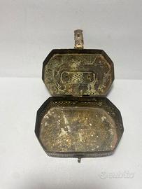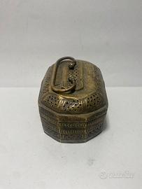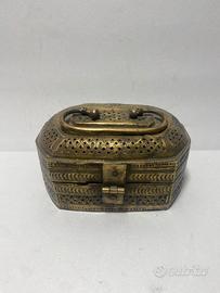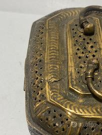 Antica scatola Indiana risalente alla fine del XIX Secolo / Inizio del XX Secolo. Completamente in Bronzo lavorato a cesello e traforato.