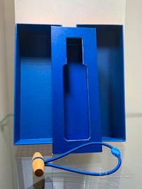 Cofanetto vuoto in cartone rigido con laccio blu per chiusura originale.