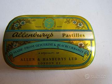 Scatola latta Allemburys, vintage caramelle balsamiche Allemburys, London chiusura a cerneria Scatola con alemno 30 anni di vita In perfetto stato