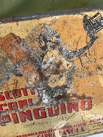 Antica scatola in latta anni 30,biscotti coni cialde e wafer ditta Capra Fasola Roma.