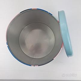 Scatola latta Balocco Pandoro vintage Winter Sport Ø22 cm contenitore decorativo Scatola in latta originale Balocco Il Pandoro con grafica sport invernali (hockey, sci, pattinaggio, ciaspole). Diametro 22 cm, altezza 21 cm. Buone condizioni generali, presente lieve ammaccatura sul coperchio. (non influisce sulla chiusura o sull’utilizzo). Ideale come contenitore o oggetto decorativo. da collezione C00015318-50