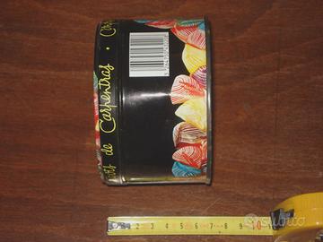 Scatola in latta boite tin box di caramelle, a colori e con illustrazione "Berlingots - Saint Siffrein". (altre disponibili !!). Descrizione e caratteristiche: Di forma cilindrica, anni 70. Peso: 85 grammi. Fabbricazione francese. Dimensioni: 11 (diametro) x 7 cm (altezza). Condizioni: In ottimo stato di conservazione. Minima ossidazione all'interno e lievi segnetti si usura sia all'esterno che all'interno. Caratteri ancora perfettamente visibili. Il coperchio aderisce ancora perfettamente e non bisogna fare forza o pressione per aprire o chiudere.