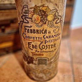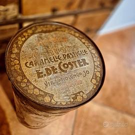 Scatola Latta Cilindro Caramelle Cioccolato De Coster 32 Cm condizioni buone , segni del tempo.