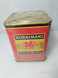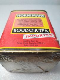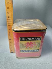Rara e affascinante lattina da collezione di tè Hornimans Boudoir Tea, un pezzo di storia del marchio fondato nel 1826.